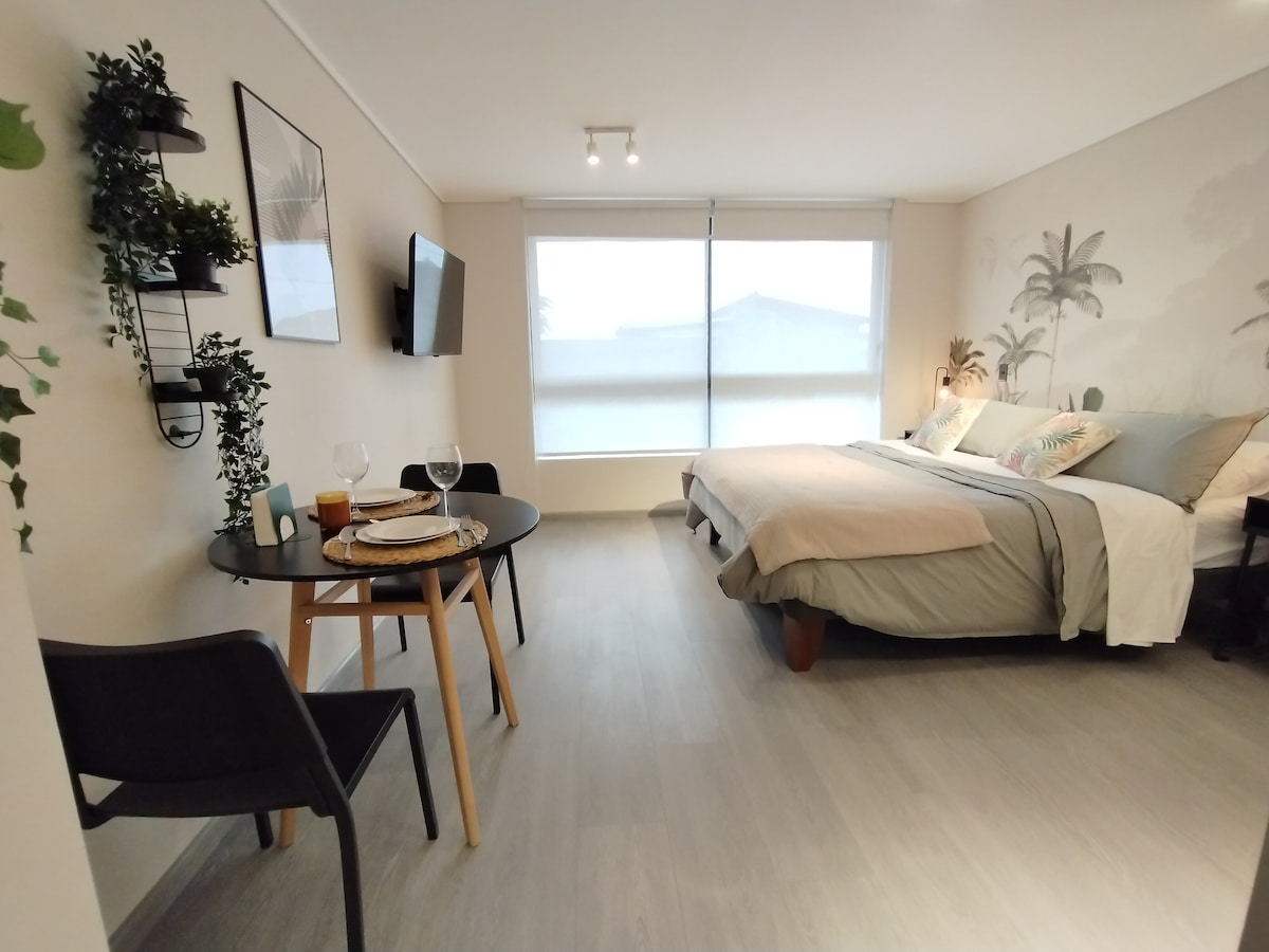 Our studio is designed to offer you the perfect balance between comfort and style. It features a double bed, a fully equipped kitchen, and a private bathroom. You’ll enjoy free Wi-Fi and a peaceful atmosphere that will make you feel at home. Immerse yourself in Chile’s rich history by visiting the Comic Park and the open-air museum, tributes to local pop culture, or relax at the Civic Plaza, where you can find live music and activities for the whole family.