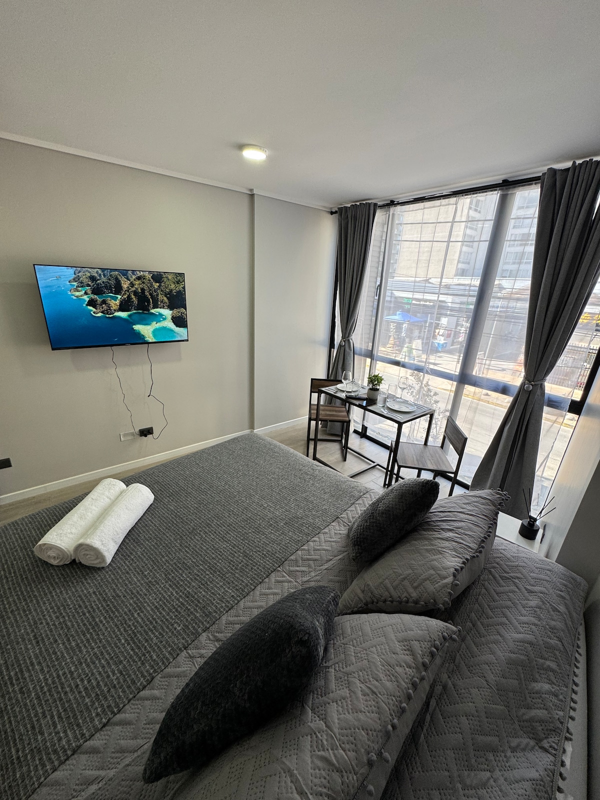 🏡 Departamento de 1 a 3 personas 📅 Estadías cortas o largas ❄️Aire acondicionado y calefacción tipo split 👩🍳 Cocina full equipada, 100% eléctrica 🚿 Baño en suite con agua caliente y tina 🧺 Incluye lavadora-secadora en el departamento 💻 Internet de fibra óptica, para ocio y trabajo 🔑 Acceso autónomo, sin contacto presencial 🕒 Conserjería 24 horas 🚇 A 12 min caminando del metro Departamental y Ciudad del Niño 🛒 A pasos de San Miguel, supermercados, farmacias y hospitales