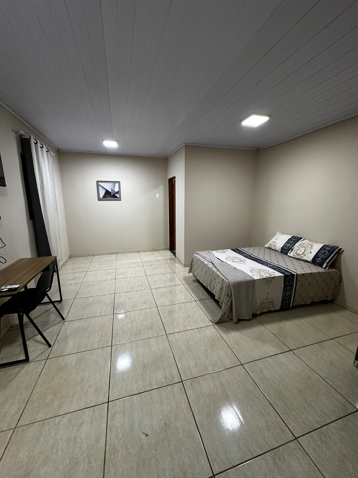 Bem-vindo à Suíte Autônoma, um espaço pensado para oferecer privacidade e conforto. Com entrada exclusiva diretamente para a rua, você terá total independência. A suíte conta com uma cama de casal aconchegante, mesa de trabalho e ambiente silencioso, ideal para relaxar ou trabalhar. Localizada estrategicamente, está próximo supermercado Fortis, Farmácia Popular, conveniência e posto de combustível.