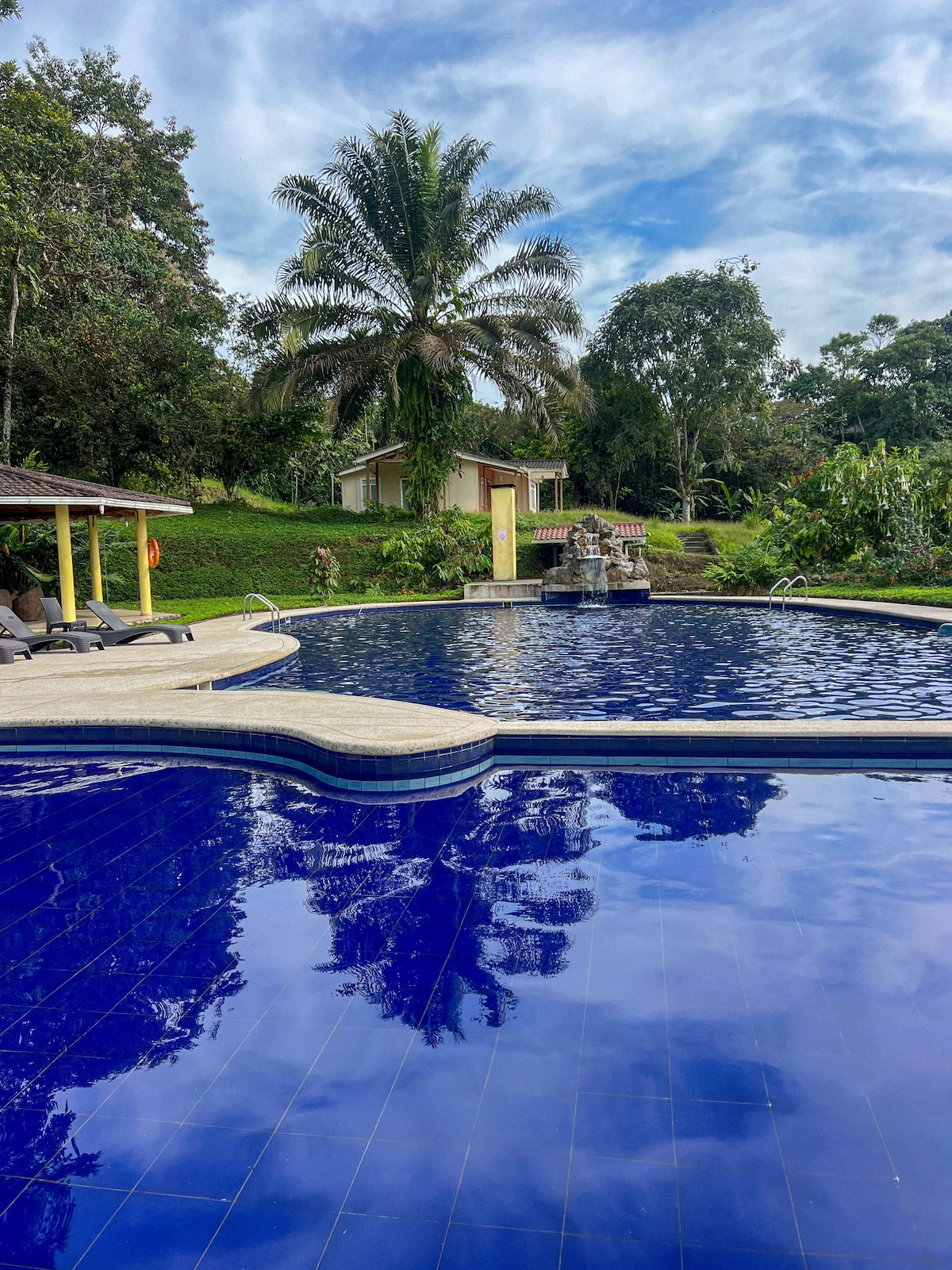 热带别墅,游泳池和瀑布