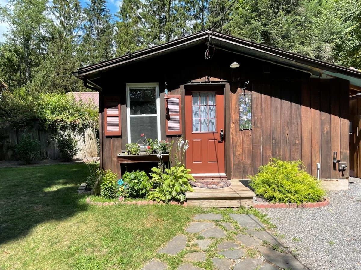 A 2.5 hour drive from NYC to a serene, private, woodland, streamside home. This cabin sits on the very edge of the Catskill Mountains. It's cozy, modern, and minimalistic with a touch of rustic elegance. All new appliances with all the cooking necessities, a comfortable bed with large screen smart tv, excellent wifi service, a romantic gas-powered fireplace and the most private back deck away from the world to get lost for a weekend in the beauty of the woods.*Now offering mid-week price deals!