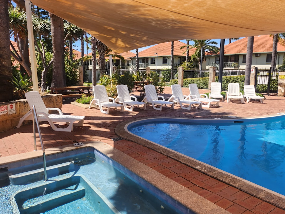 Beachy ground floor, two bedroom villa with spa bath that sleeps six people making it a great choice for families! Centrally located within walking distance to Mandurah's amazing Marina, fantastic Dolphin Quay and lots of great restaurants! A fabulous swimming beach is at the end of the street, only 250m away offering endless water activities.