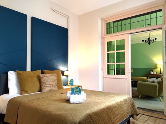 Deze luxe en ruime hotelkamer (33 m2) heeft een Auping bed 180 x 210cm, daarnaast een luxe badkamer ensuite met vrijstaand bad, aparte douche en toilet, doucheproducten van Marie Stella Maris. Door middel van een trap in de slaapkamer kom je op de vide waar zich een 2-persoons bed bevindt voor kinderen. De prijs is voor 2 volwassenen. Voor de kinderen geldt een meerprijs van € 35,- p.p.p.n. 's avonds lekker eten in ons restaurant Centraal Baarlo. Komen jullie van onze gastvrijheid genieten?