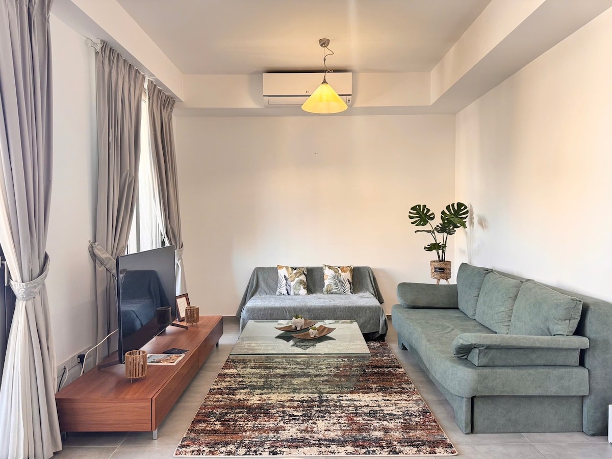 🏝️ Stylish 2-Bedroom in a Prime Location 🌇 Winter-ready (seasonal): Heated communal pool, rooftop Jacuzzi & Sauna. Located in the heart of Paphos, this modern, fully equipped, and spacious apartment offers a comfortable stay with charming pool and city views. Part of a modern complex, enjoy: - Communal heated pool (seasonal) - Communal rooftop terrace with Jacuzzi & Sauna (seasonal) - Gym 1 km – Alykes Beach 1.3 km – Chabad of Paphos 1.8 km – Kings Avenue Mall 2 km – Paphos Harbour