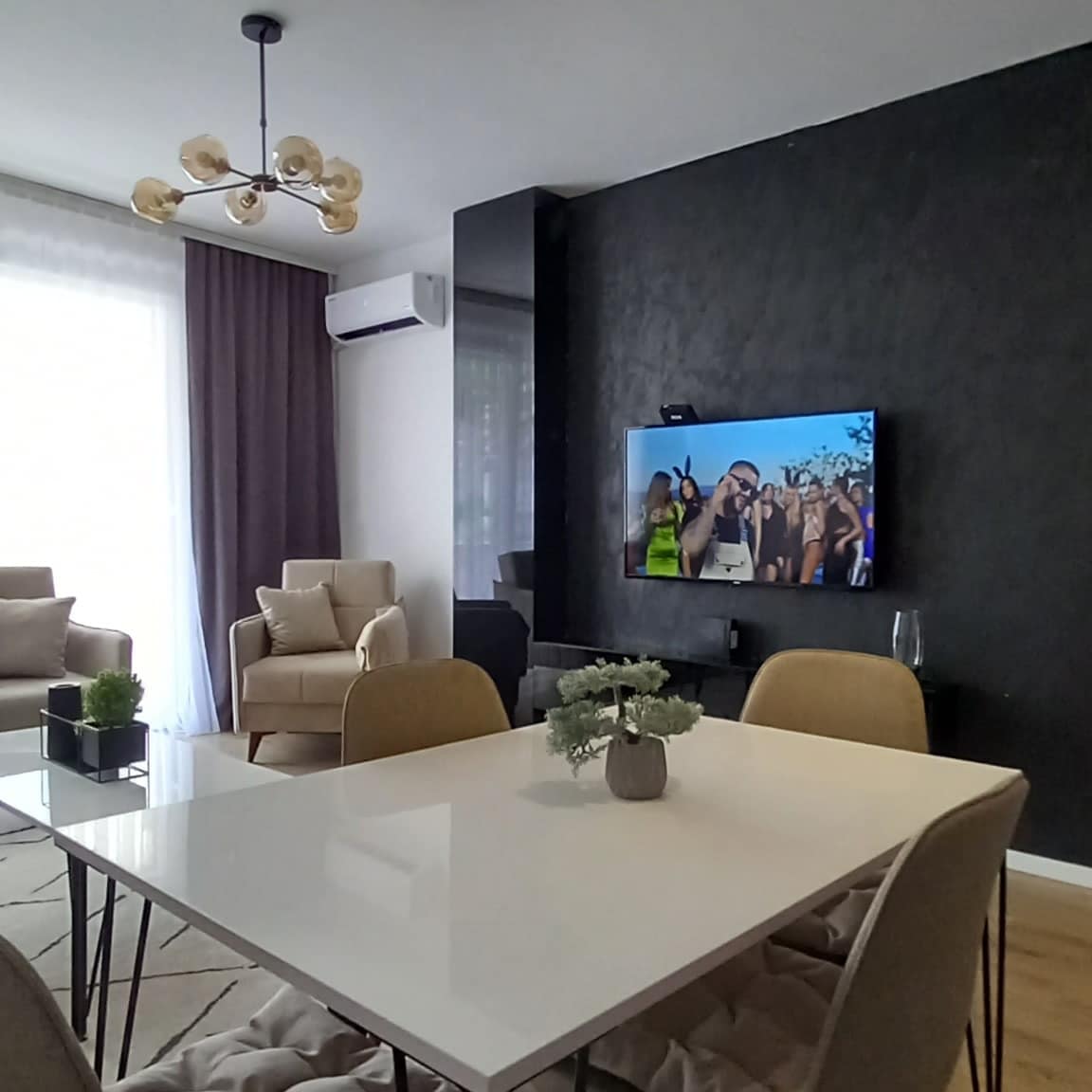 Enjoy a stylish experience at this new centrally-located place. The place has two bedrooms and a large living area. The bedrooms and the living room have a view of the Rugova Mountains and the river Lumbardhi. It is equipped high-quality kitchen TV, social games, and a welcome pack. One bedroom has a double bed, and one has two single beds, one of which can be moved. For the sixth person, there is a sofa in the living room. In the center, paid parking. Discounts on Via Ferrata and Zipline.