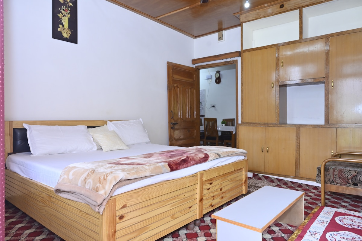 Get away from it all when you stay under the stars. Please note, there is 250 meters trek from parking spot to the property. We will pick your luggage. What You’ll Love - ★ Cozy master bedroom plus a Balcony ★ Beautiful wooden architecture ★ Wi-Fi ★ Power backup ★ Delicious in-house food service ★ Garden with bonfire area Please note - - Breakfast, meals, room heaters, bonfire, and other services are charged separately and are not included in the stay price.