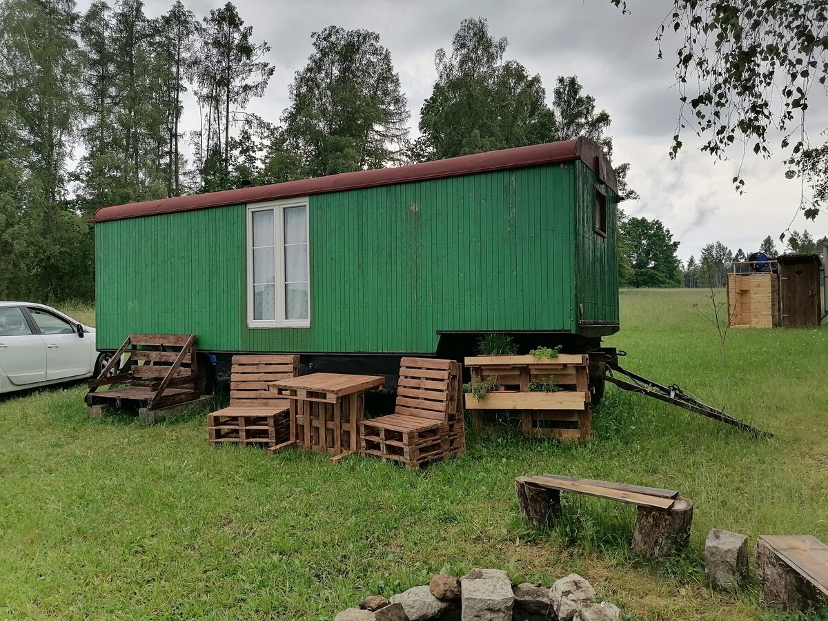 CZ: Unikátní ubytování v maringotce, na pozemku s rybníčkem. Užijte si čas strávený v obklopení přírody. Bez elektriky, wifi. Uvnitř maringotky se nachází kouzelná truhla plná společenských her a houpací síť. EN: Unique accommodation in caravan, magic place with a pond. Enjoy your time spent surrounded by nature. Without electricity, wifi. There is a magical box with lots of games and hammock.