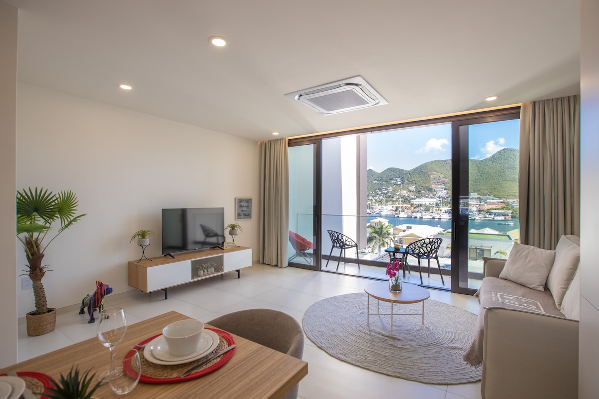 Nestled on the hills of Indigo Bay, La Pearle is located midway between Philipsburg and the Simpson Bay touristic hang out. La Pearle exudes relaxation the minute you walk through the door! Awake to watching the Allure of the Seas make its way into the harbor. La Pearle, elegant, sophisticated and distinguished! The 1- bedroom spacious condo sleeps two! Experience luxury with a huge verandah overlooking the Indigo beach, Caribbean living, yours to enjoy!