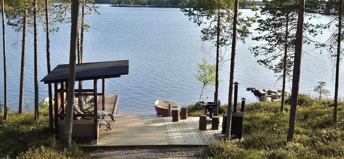 "Kepan Tupa", viihtyisä hirsitalo järven rannalla.