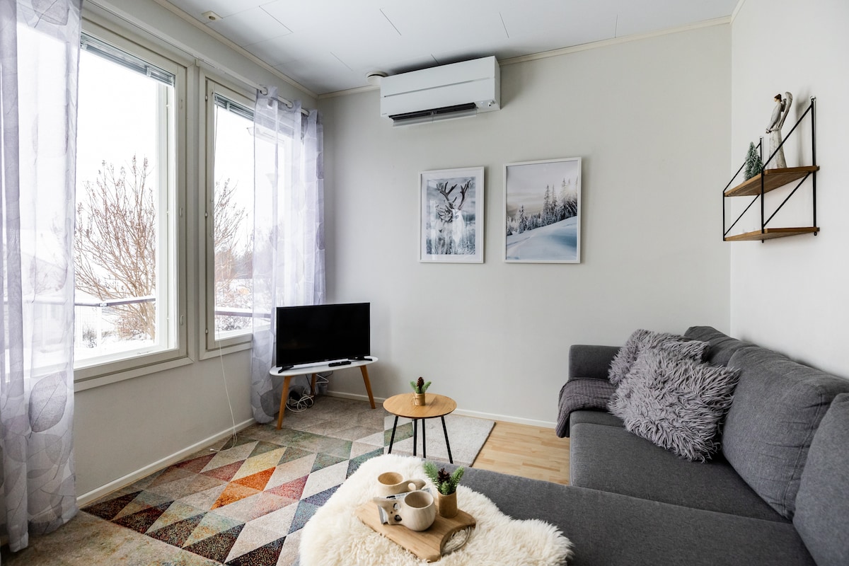 A cozy house in a peaceful area on the edge of a forest. No city noise or light pollution, yet less than 10 minutes by car to the city center, 5 minutes to the ski resort, and 15 minutes to Santa Claus Village. A large private yard. The living room features a fireplace that adds warmth and atmosphere. The kitchen is fully equipped for cooking. The house includes an electric sauna, and there’s a wood-heated sauna in the yard. You can even enjoy the northern lights while relaxing in the jacuzzi.