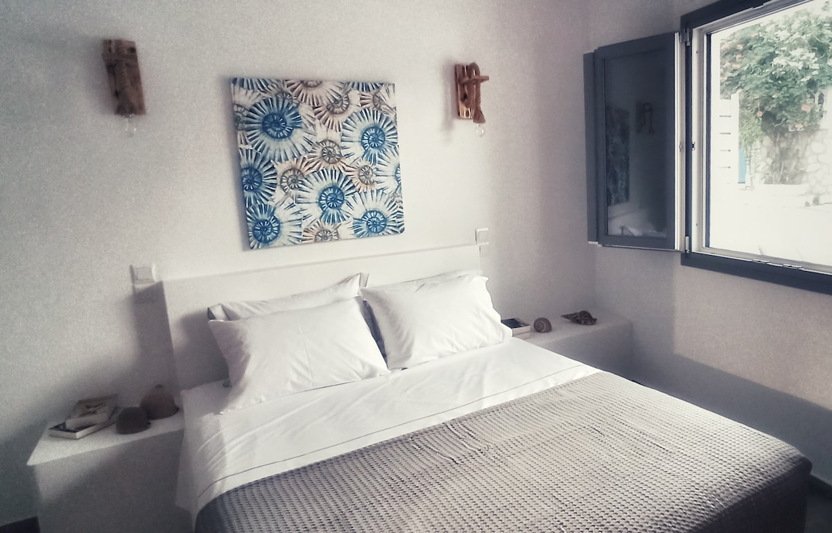 "Yialos" means seashore in Greek. We couldn’t have chosen a more suitable name for our apartments are they are literally 3 steps away from the sea, in the area of Kounoupitsa. Yialos has 2 fully renovated (in 2020) and equipped apartments: Asterias & Nautilus. Asterias has a bedroom with a double built bed, a living room with a fully equipped kitchen and 2 built sofa beds, a bathroom and two verandas: one with a sea view and another one quieter in the courtyard.