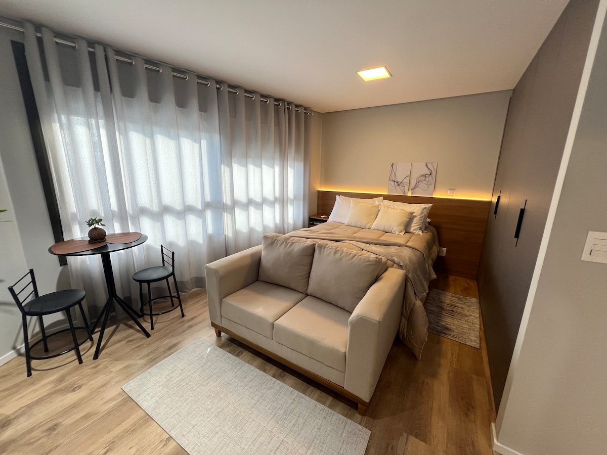 O Studio 511 foi pensado e projetado em todos os detalhes para receber os hóspedes da melhor forma possível, com muito carinho! O projeto é assinado por uma designer de interiores que cuidou de todos os detalhes, o studio é 100% equipado e acomoda confortavelmente até 4 pessoas. O resultado é um ambiente prático, leve e aconchegante proporcionando momentos únicos de relaxamento e descanso para os hóspedes terem uma excelente estadia! Para melhor comodidade o Loft esta equipado com Alexa.