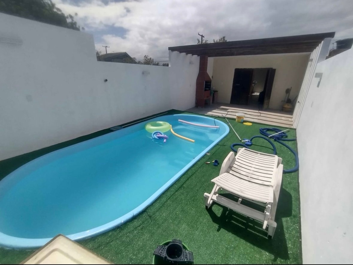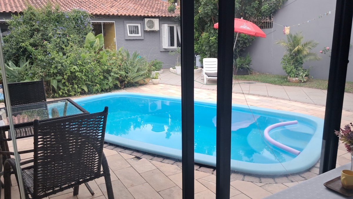 Casa com área coberta e lugar para dispor redes Piscina Espaço com churrasqueira externa ao lado da piscina Cozinha campeira com churrasqueira interna e Fogão à lenha 2 dormitórios (1 com ar condicionado) Banheiro Pátio amplo Mini horta à disposição dos hóspedes Estacionamento para até 3 carros Lugar tranquilo; 6 minutos do calçadão da praia (caminhando); excelente para relaxar e exercitar-se à beira da lagoa.