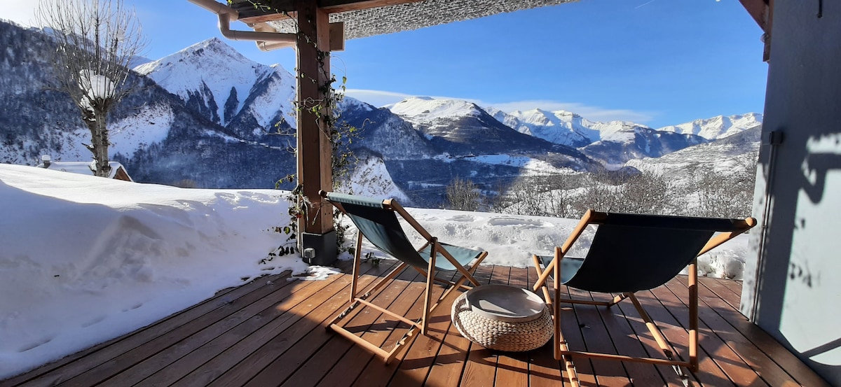 Vous souhaitez visiter les Hautes-Alpes pour vos prochaines vacances ? Notre chalet « Le Carré de Bois » est idéalement situé sur les hauteurs de Briançon. Une ambiance chaleureuse, une vue exceptionnelle, une décoration choisie et des équipements de confort vous garantissent un excellent séjour dans nos montagnes ! Baignés de soleil, la terrasse et le jardin vous permettront de profiter du ciel bleu et de la superbe vue sur les sommets environnants.