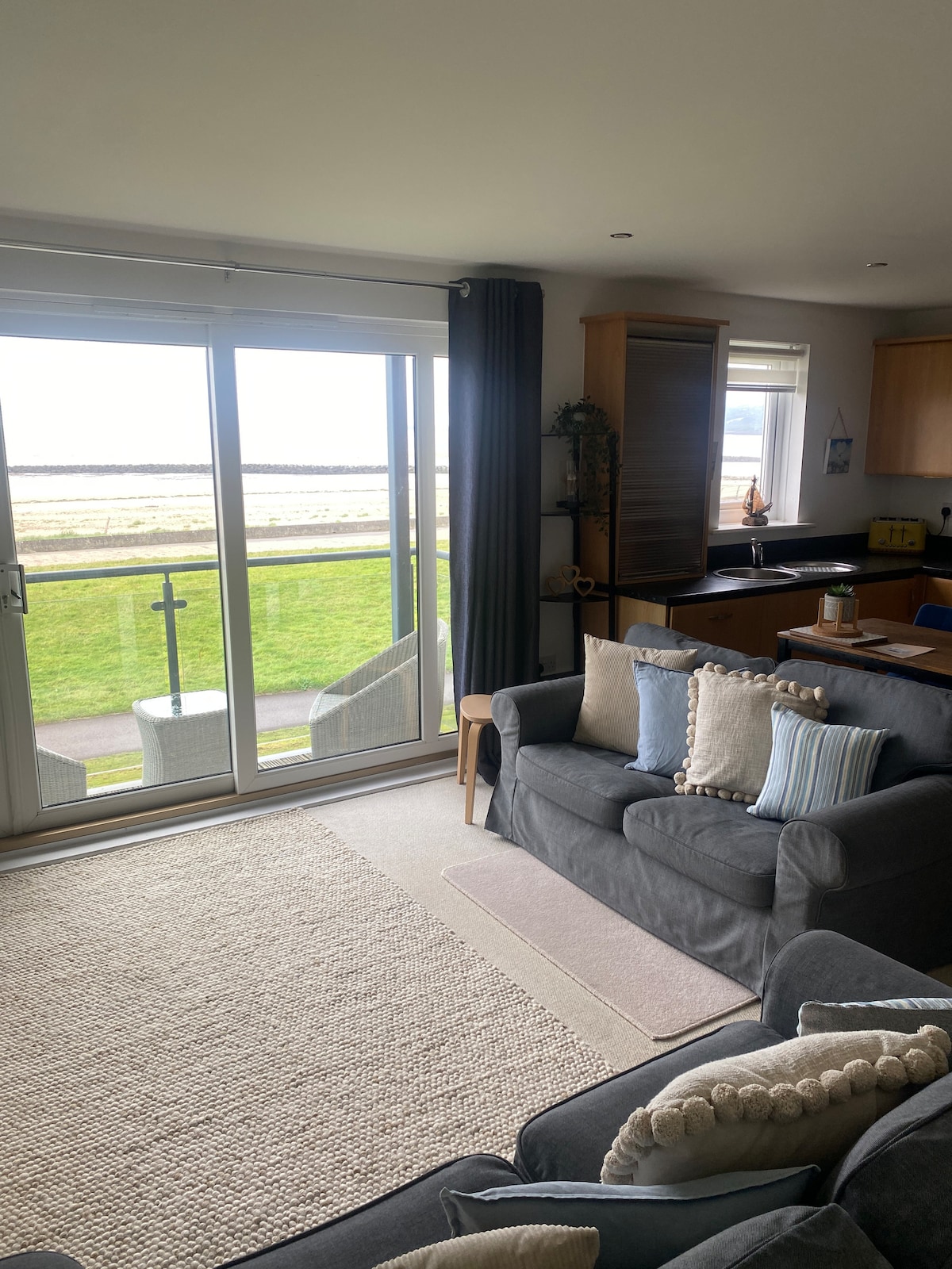 First floor modern apartment situated on Carmarthenshire Coastal Path. 25 meters off Llanelli beach. The apartment offers breath taking sea views of Llanelli beach, Loughor estuary and across to the Gower peninsula. Cosy spacious apartment is ideal as a central base to explore all of West Wales. The cycle track takes you one way to Swansea & The Gower or the other way to Burry Port harbour & Pembrey. Tenby is a one hour drive away. Ideal for 4 guests but can fit up to 5 if 2 adults, 3 children