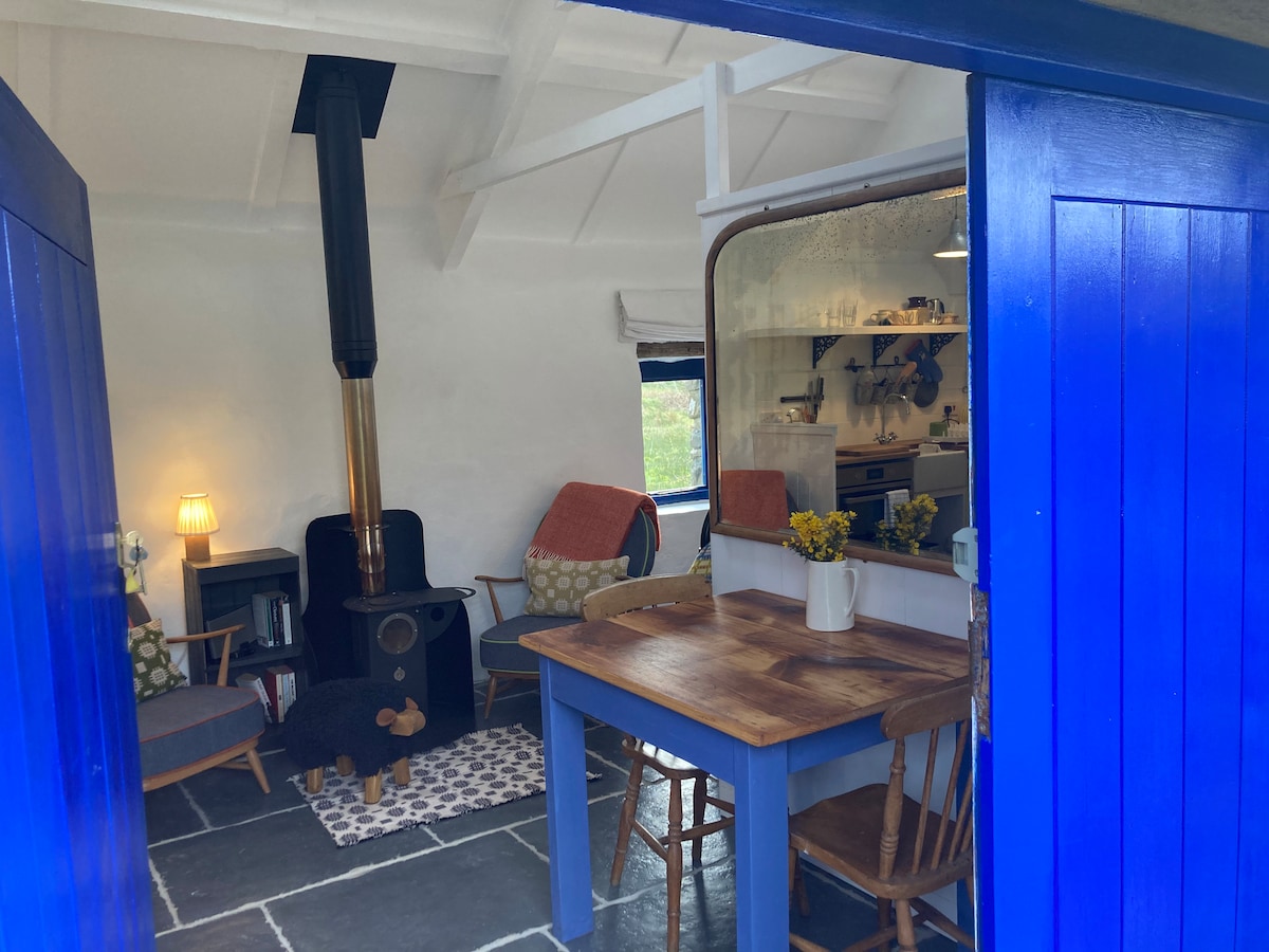 Quirky, fun space in a tiny, traditional Welsh barn, with thick stone walls and a dinky Welsh woodstove (logs provided). Perfect for sea swimmers, walkers, seal spotters, bird watchers and beach goers. Cycles and surf boards to borrow, at your risk. Walk a mile to the coast path for spectacular sea views, cycle/drive 10 minutes to St Davids or Whitesandsbeach, 15 to the Blue Lagoon. We supply bread, butter, eggs, milk, coffee, tea and sugar for your first breakfast. Sadly we cannot host dogs.
