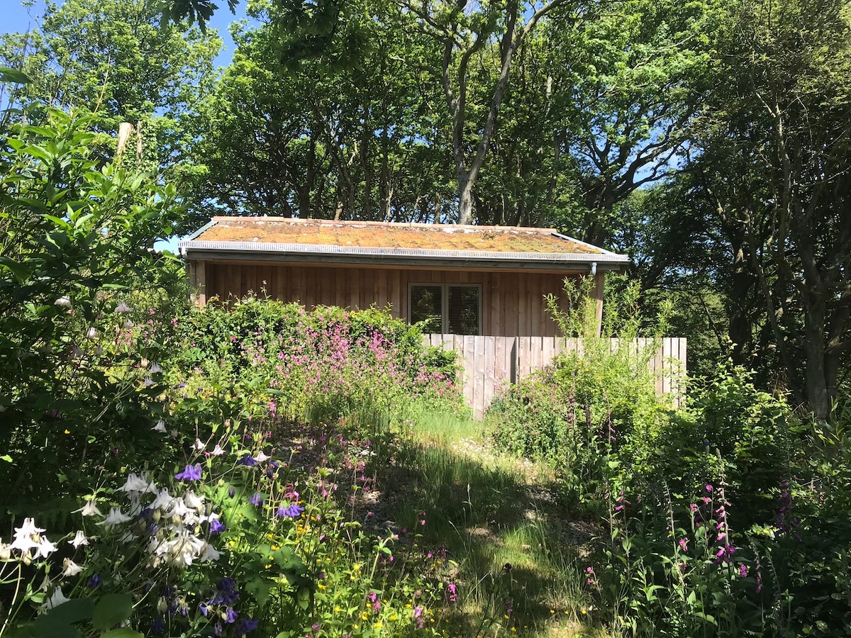 Romantic Pembrokeshire cottage in beautiful 3-acre grounds with sauna, natural swimming pond (rain dependent), games room & kayaks. Hill walks on the doorstep, stunning beaches & cliff walks nearby. Stargaze from a comfy king-size bed. Snuggle up by a wood-burning stove (free wood). Large bathroom with bath, shower & underfloor heating. Well equipped kitchen with coffee machine. Covered outdoor seating area with firepit & bbq. Fibre internet, smart TV (Netflix etc). 2 well-behaved dogs welcome.