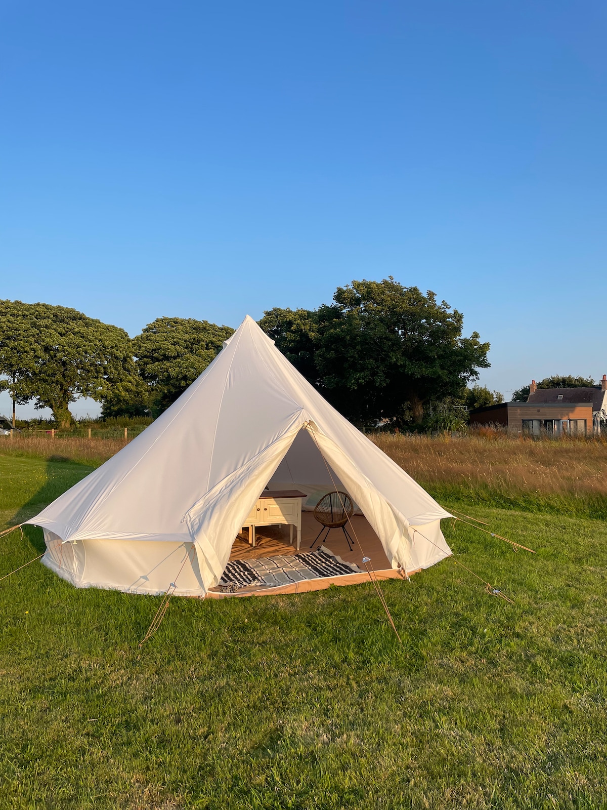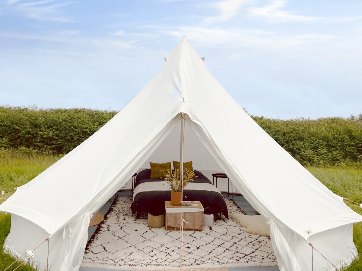 Reconnect with nature at this unforgettable countryside escape. Nestled in the Pembrokeshire Coast countryside, The Makira Bell Tent offers a perfect base to explore Pembrokeshire. We are next to a walking access onto the Pembrokeshire coast path.Beaches, castles, tea rooms, pubs and restaurants in the local area (by car/public transport). Tenby is 30 mins by car, and Pembroke Castle 10 mins. Sleeps 2 (Kingsize), but we can put up x2 single beds also on request. (See charges for info)