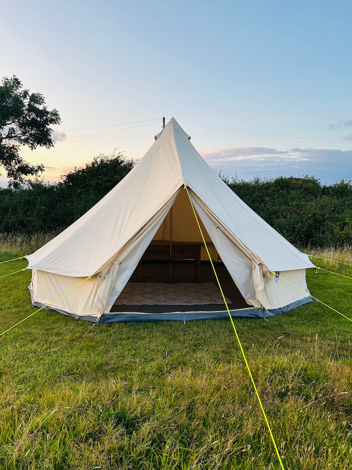 Gallows露营。预先搭建的5米钟形帐篷。