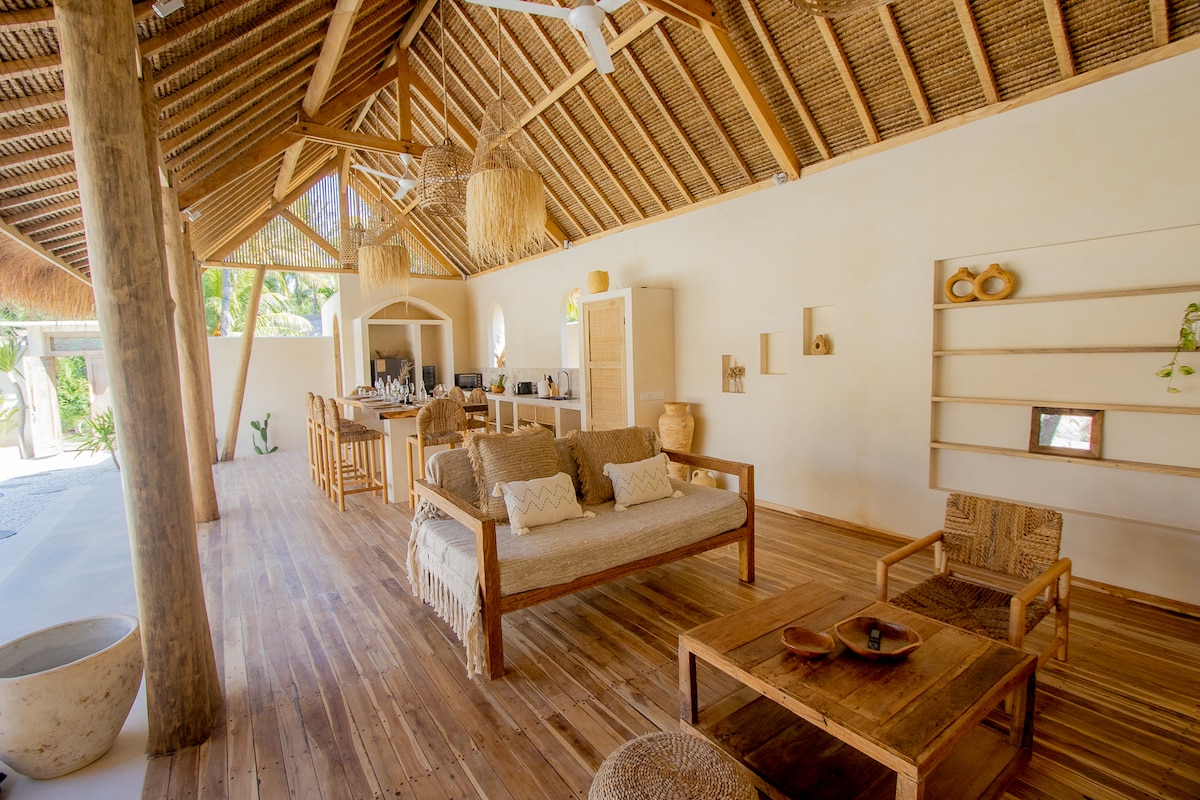 The kitchen at Anandita is cleverly divided for either guest or staff use. The villa’s cook is expertly skilled at preparing a wide range of delicious local and international dishes – anything from formal dinners in the dining pavilion, to a romantic supper beside the beach, to a casual poolside barbecue. The interiors are somehow minimalistic, yet regal – an ideal environment for meditation and rejuvenation. The open plan concept as well as high vaulted ceilings keep the feelings airy and breezy throughout the gorgeous pavilions.