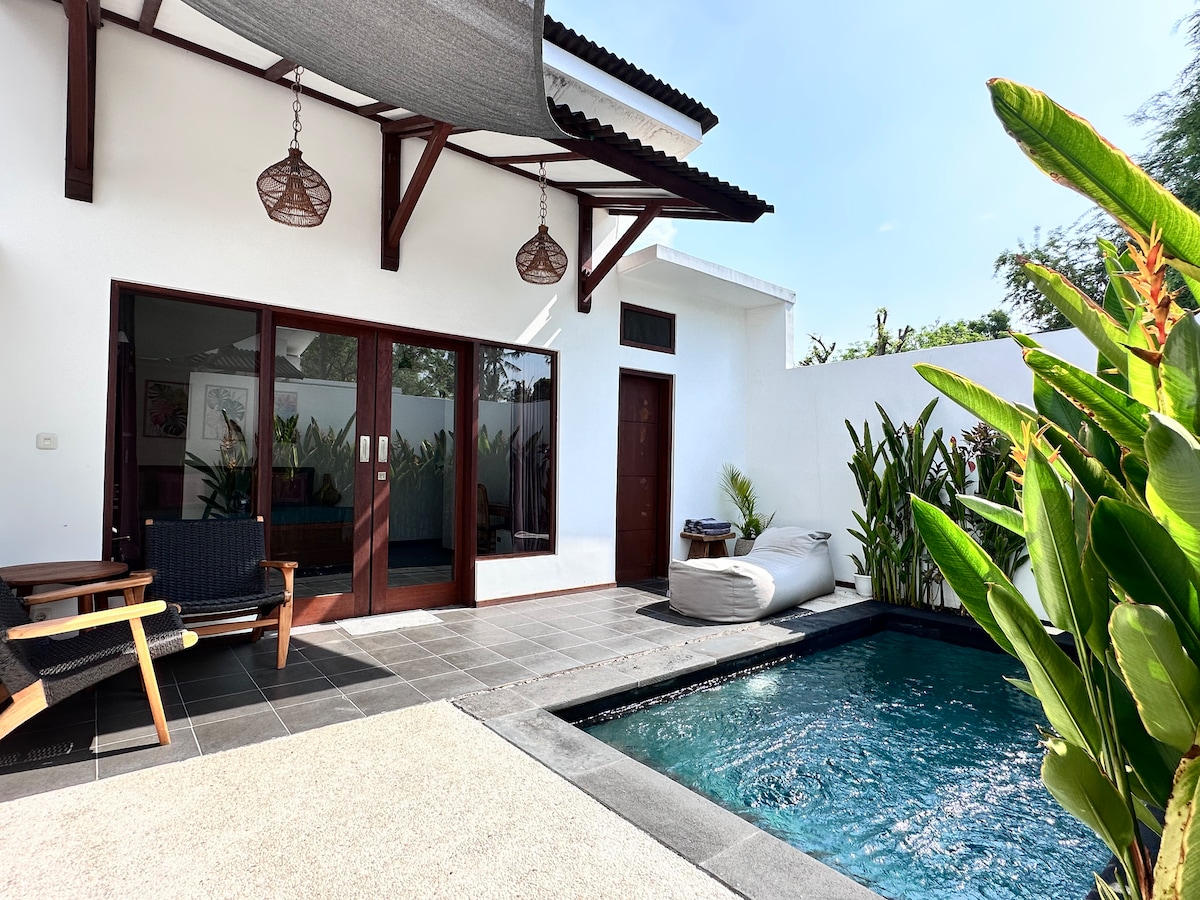 🌺 Villas Kenari & Kismis - Identical 410m² private 1-bedroom villas with 8m pools 🍳 Free breakfast delivered to your villa 🚲 Free use of bicycles to explore the island 🏋️ Free access to our gym w/AC & the island’s only tennis court 🔒 Quiet, secure compound with 24-hour security 🌞 Sun loungers, hammock & shaded terrace 🌴 Outdoor tropical bathroom 📺 Smart TV with streaming (own logins required) ☕ Free coffee, tea & drinking water 🛎️ Reception 7 am – 10 pm 🧹 Daily cleaning included