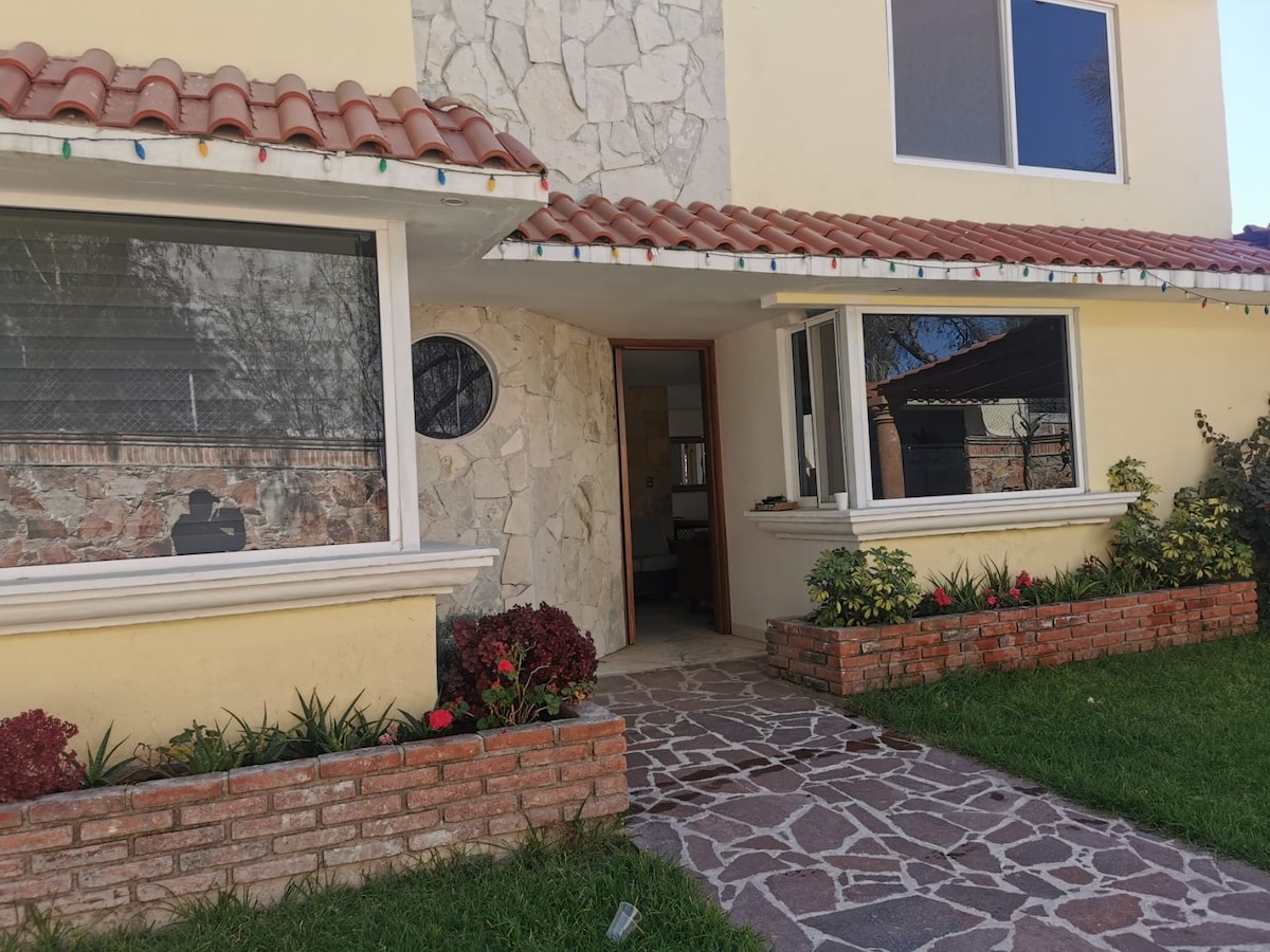Hermosa y confortable casa estilo Mexicano .Para 8 personas, ubicados a 10 min.en auto del centro de Tequis, a 30 min de Peña de Bernal y a 20 min. de diversos viñedos. Alberca de 7x4 climatizada con sistema solar privada solo para ti. Asador, Fogatero,Chimenea(no incluye leña ni carbón)fuente, jacuzzi,cocina equipada, WIFI, Smart TV 50” 4K y tv cable, NETFLIX,YouTube.Aceptamos 2 mascotas med.con costo de $300 (registrarlas en la APP)
