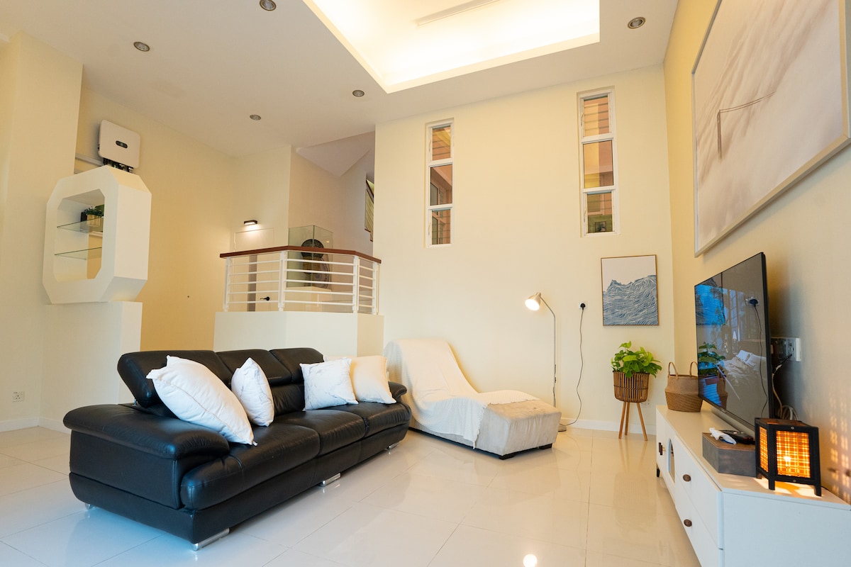 欢迎来到海天一色阁- 豪华复式高空海景居所 Nuaderland! 这个迷人的度假胜地将带您领略怀旧的槟城心脏地带的魅力,与现代的奢华相结合,为您创造难以忘怀的体验。位于怀旧的槟城市中心,Nuaderland是一座占地110平米的豪华复式高楼,完美地融合了历史、自然之美和现代便利。 每天清晨,当您从梦中醒来,将迎来令人陶醉的海景,甚至可以一览连接岛屿与大陆的标志性壮观桥梁。想象一下登上高楼山顶,将绚丽景色尽收眼底。当旭日冉冉升起,天空被粉色、紫色和橙色的光辉点缀,将黑夜的阴霾一扫而空,将为您探索和放松的一天铺设美好基调。 然而,Nuaderland还有更多惊喜等待着您。这里拥有槟城岛上私人最高的花园,这座植物景观艺术向槟城山丰富的植被致敬。在这个花园中,您将与自然建立深厚的联系,感受到丰富的色彩和芬芳,沉浸在宁静和惊奇之中。 欢迎踏入Nuaderland,这里汇聚了怀旧的槟城与现代的优雅。从这里开始您的度假之旅,在这里,历史、自然之美和便利交织在一起,创造出一个难以磨灭的体验。立即预订您的住宿,揭开这个迷人岛屿天堂的神秘面纱。让Nuaderland成为您美好回忆的一部分吧!