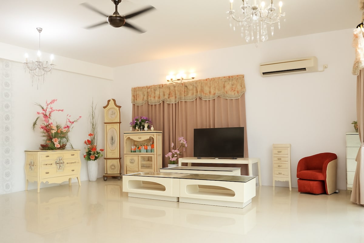 A tranquil and private space, Comfy Bangalow Family House is strategically located near to Penang famous Kek Lok Si Temple and Penang Hill Funicular Railway. Close to most of the popular spots in Penang island, places such as Georgetown and Gurney Drive are approximately 20mins drive away. 这是一栋带自动门、双层独立豪宅的落地房屋。共有4间卧室,共有10张标准双人床。房屋大门内有一个大空间,共有4个卫生间。位于Ayerltam地区,靠近槟城(Penang Hil)和极乐寺(Kek Lok SiTemple)。如果您与家人一起入住,这里是最佳住宿地点。