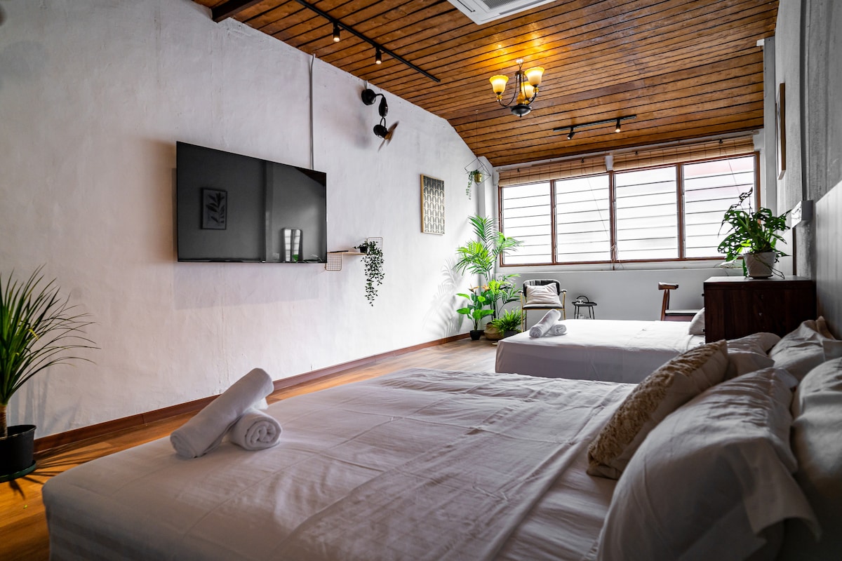 Stay at Caryn Vintage Guesthouse, right on Penang’s famous Armenian Street — a favorite for history lovers and art explorers. ✨ Our Family Room comes with 2 King beds, located on the first floor above Kenjin Restaurant. Enjoy modern comforts like air-conditioning, smart TV, Wi-Fi, and more — all wrapped in vintage charm. 💫 入住 Caryn 复古民宿,坐落在槟城著名的 亚美尼亚街 —— 历史与艺术爱好者必访之地。✨ 我们的家庭房配有 2 张特大床,位于 Kenjin 餐厅楼上(一楼,需走楼梯)。房间设施齐全:空调、智能电视、Wi-Fi 等,让您在复古魅力中享受现代舒适。💫