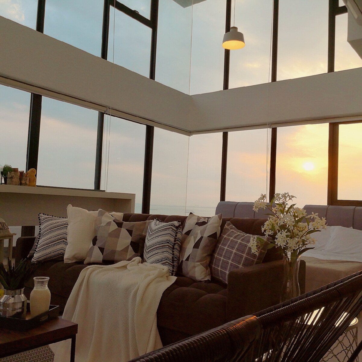 A Cozy Urban Loft with Sunrise, Sea Bays & Skyline Views. Escape to a centrally located .This loft-style condo , an open-concept layout & expansive floor-to-ceiling windows that frame stunning skyline vistas. Watch the sunrise in morning light & the sunset glow over the opposite sea bay—all from your bright and airy living space. Seafront Jogging Path . Explore neighborhood filled with charming cafes, authentic local food stalls, restaurants, and a shopping mall within easy walking distance.