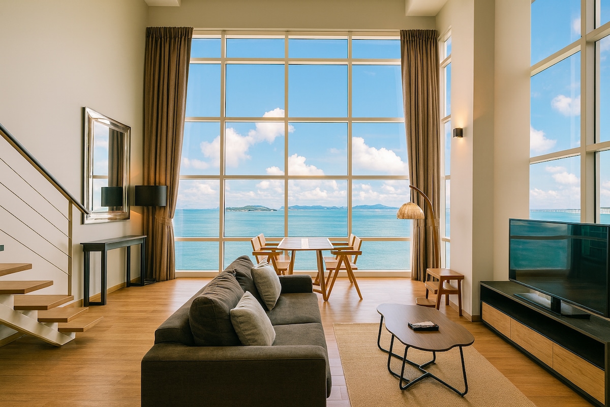 93sqm 2BR Seaview Duplex Condo with Sunrise Views in Georgetown-Maritime Suites ★ Prime location-10 mins drive to George Town heritage‑area ★ Top-Tier hair dryer ★ 2 Free Indoor Carpark with 24-hrs security ★ High-Speed WiFi ★ EV Charger available(fees apply) ★ Free access to Swimming Pool & Gym ★ F&B, groceries and laundry within walking distance — plus a seafront promenade for jogging and relaxation ★ Ideal for medical travel-10mins by car to Loh Guan Lye Hospital, Gleneagles & Island Hospital