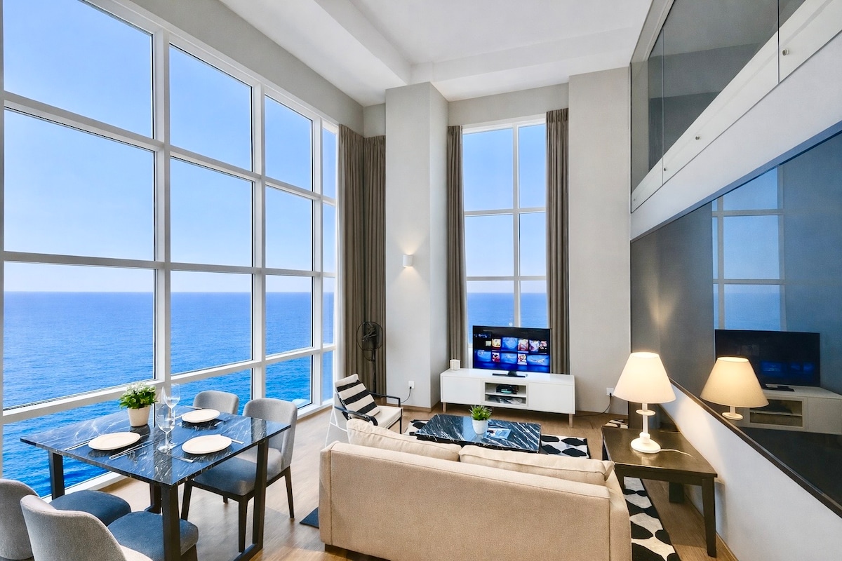 Maritime Suites by Comfy ★ Panoramic Seaview ★ Sunrise view ★ Penang Bridge view ★ High floor ★ 5 stars Superhost Comfy Homestay Team ★ Nearest seaview seaside duplex to UNESCO Heritage Core Zone • 1200 square feet • 1 private car park • 300 Mbps WiFi • 30 restaurants, cafes, pubs, Starbucks, Coffee Bean, FamilyMart, 7-Eleven, HappyMart are below our house. • Fully air-conditioned • Tour Packages are available • 5 to 10 minutes drive to Chew Jetty and UNESCO Heritage old town.