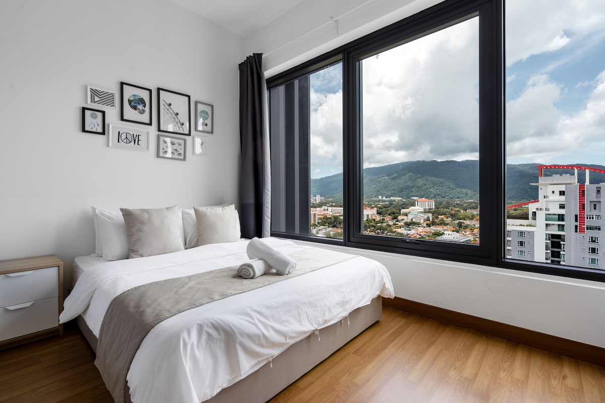 T8bnb Dad' New Design Cozy Pg Bridge excellent Seaview next USM Home is 5 guests with 2bedrooms / 2bathrooms' Newly renovated unique Designs cozy home stay located just next 2minutes to Pg Bridge & Pg university USM , 10 - 20minutes to UNESCO Heritage Georgetown Komtar, Prangin Mall, EgateTexco , QueensMall, my place is digital self check in, ideal for backpackers, tourist, business travelers, family with kids, free carpark bays! Based first come first serve, If u not mind Ground to earth Apt.