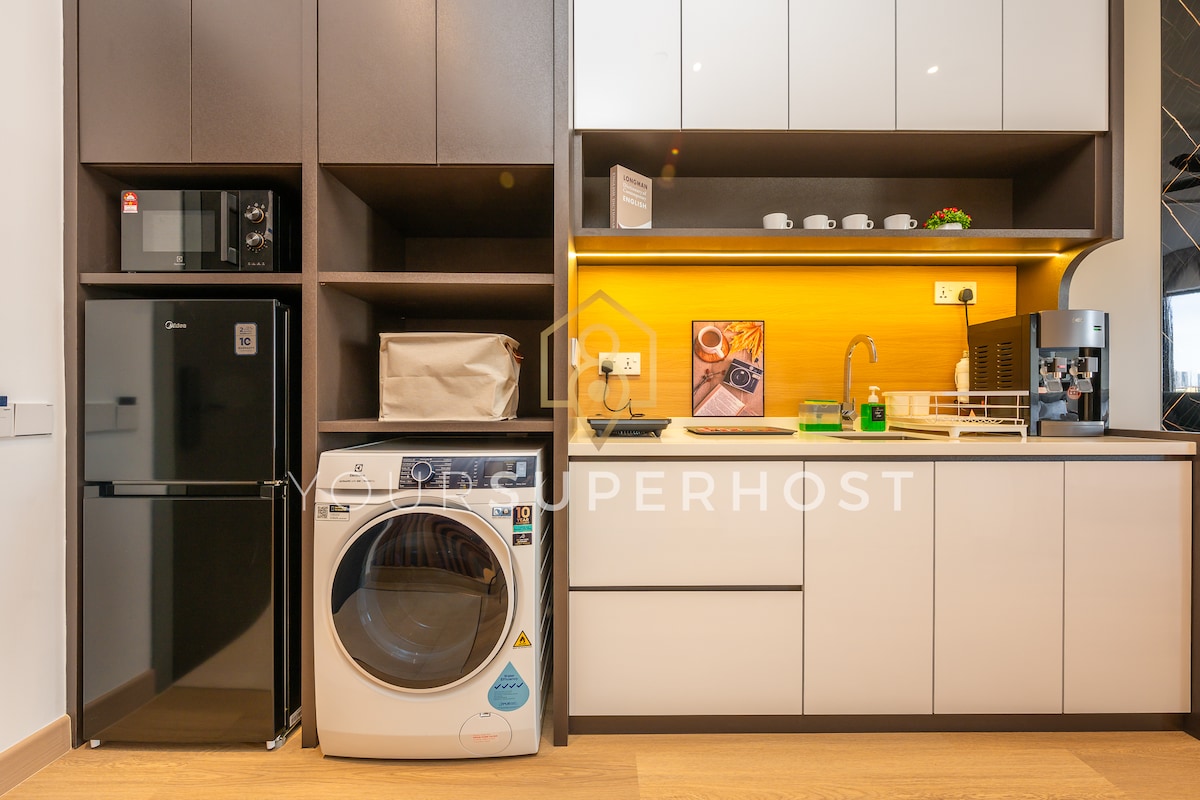 我们家是一间位于完美地段的海景套房。 让你可以离开烦嚣,与大自然海景共处的舒适休息环境。 温暖舒适,精致的室内设计,配上无限高速Wifi 和提供安全饮用的过滤水机。再加上9楼露天海景泳池,难怪很多客人都告诉我们,他们好想就赖在家里不出门啦 ^_^ 其实我们家里离市中心(乔治市世遗古迹区)才5公里而已,乘车15分钟就可以去找壁画拍照打卡啦! 走吧,动身,出门找美食咯~ 步行 : - 日式 /韩式餐馆/ 7-11 (24小时)便利店,都位于底楼(Ground Floor) - 巴士车站 > 1分钟 - 阳光超市 > 5分钟 - 肯德基快餐店 / Watsons药房 > 5分钟 - 星期五夜市 > 5分钟 乘车 : - 美食中心 > 10分钟 - 麦当劳 (24小时) > 10分钟 - 星巴克 > 10分钟 - 乔治市UNESCO世遗区(街头壁画) > 15分钟 - Sungai Nibong长途巴士站 > 15分钟 - 槟威大桥 > 15分钟 - 槟城国际机场 > 25分钟 - 升旗山 / 极乐寺 > 25分钟 - Batu Feringgi 海滩 > 30 mins