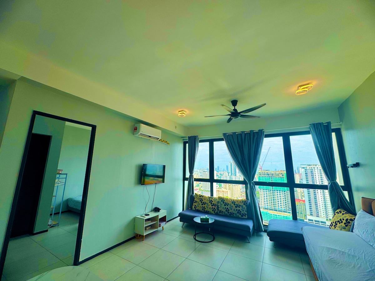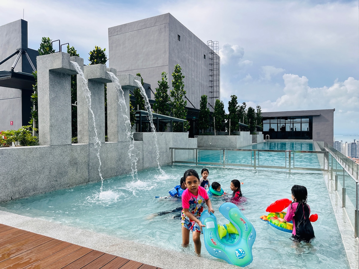 • 2 Bedroom & 2 Bathroom 5adult 2children • 2 Queen bed • 1 Single bed • 1 Sofa 3 Seater • 1 Complimentary carpark • Joven water purifier • Front load 2 in 1 washing machine • 2 Shower heater • Hair dryer • Iron • 55 inch Smart Tv View from unit (HIGH FLOOR) • Half view • GeorgeTown city view • Seaview Facilities • Free access to 32 facility at level 11 & 42 (Gym, cardio, body weight gym, indoor pool, outdoor infinity pool, sauna, steamroom, rooftop 360 view & etc)