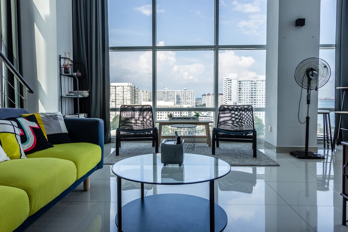 Hosting is our passion! Why our guest love us? •We are 5 stars SUPERHOST •180° PANORAMIC SEAVIEW •Slumberland branded mattress (hotel standard) •At waterfront •1000 square feet (whole duplex unit) •1 private car park •TIMES WiFi •Netflix TV •30 restaurants, cafes, pubs, Starbucks, Coffee Bean, Subway, 7-Eleven •Fully air-conditioned •5 to 10 minutes drive to Chew Jetty and UNESCO Heritage old town •15 - 20 minutes to airport