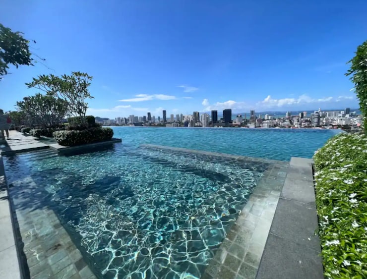 「刷爆小红书!乔治市阳台无边泳池套房」2房2厕可住8人!