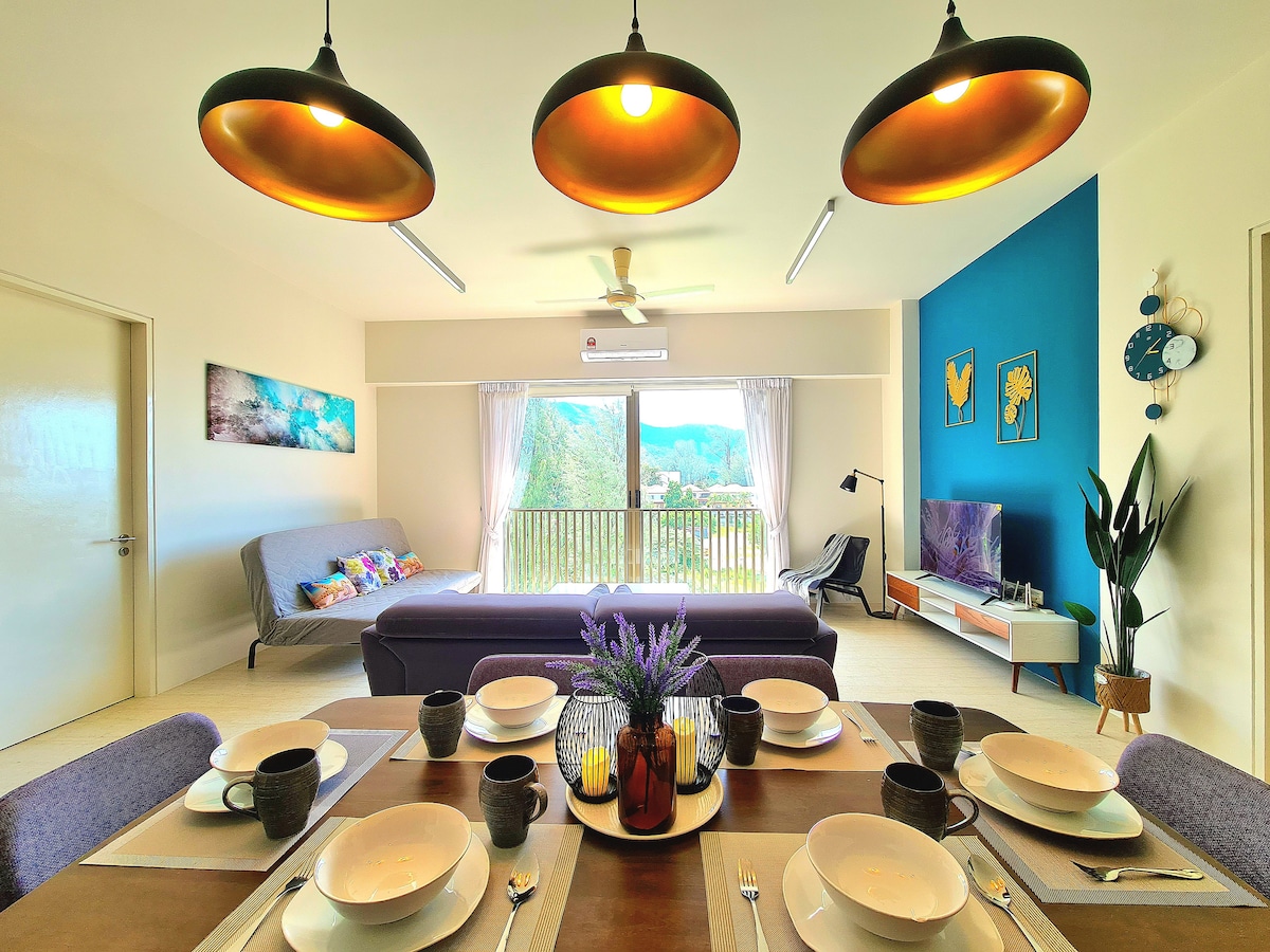 The only luxury homestay along Batu Ferringhi beach with direct access to beach, literally you just need to step out from the apartment to enjoy the sea, beach and water activities. Breezy 2 bedrooms for 5 adults: 1 king sized bed, 1 queen sized bed and one sofa bed in the living room. Beachfront pool, modern gym, playground Free wifi & cable tv, parking Best location to explore Batu Ferringhi area, and walking distance to local eateries, bars, spas, galleries & western restaurants