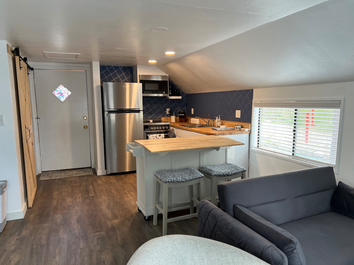 New, private studio apartment offers the perfect blend of comfort, convenience, and natural beauty, ideal for a couple or small family seeking a quiet retreat. Located just across the street from Diamond Lake, this charming property gives you exclusive access to 100 feet of private beach. Spend your days lounging in the sun, paddle in our kayaks, or tie up your boat at the private dock. Take in stunning sunsets from the beach—this west-facing shoreline captures every last ray.