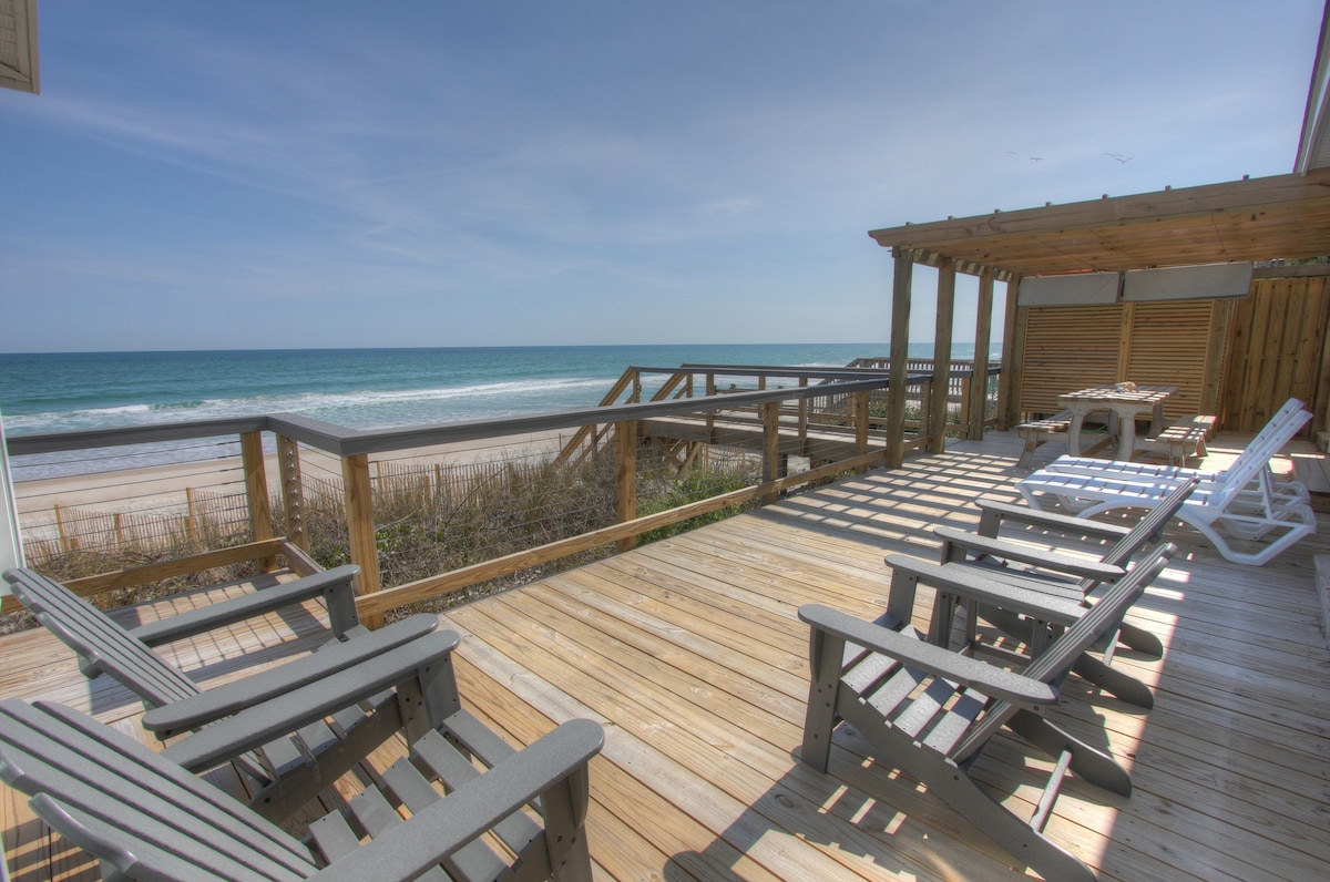 Escape to Paradise on Topsail Island! -Come stay at our charming beach house, just steps from the sand and surf. Whether you're sipping coffee on the deck or watching the sun rise over the waves, you’ll love the unbeatable ocean view and perfect location -Direct beach access – no roads to cross -Stunning, uninterrupted ocean views - Private outdoor spa as well as all linens provided -Walking distance to downtown shops, restaurants and the pier -Family-friendly and full of nearby activities