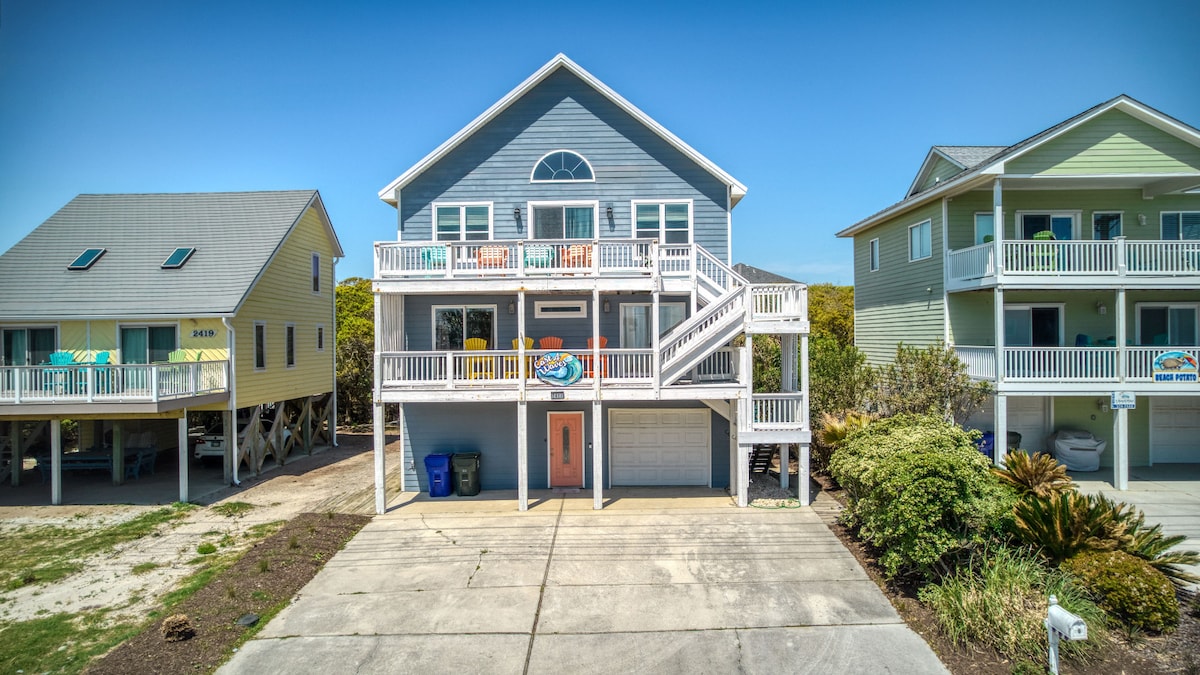 Welcome to "Toes In The Water", our beach home steps away from the beach w/ sound views. This updated house with open kitchen/dining/living room has 4 bdrms, 2 baths, & game room . Outdoor space includes multiple decks & screen porch. Patio has hot tub, dining table & chairs, fire pit & outdoor shower. 1st level is a game room w/ ping pong, darts, & more. Includes beach cart, umbrella, Shibumi, bikes, boogie boards, 2 person kayak, 2 paddle boards, surf board, & Level 2 EV charger.