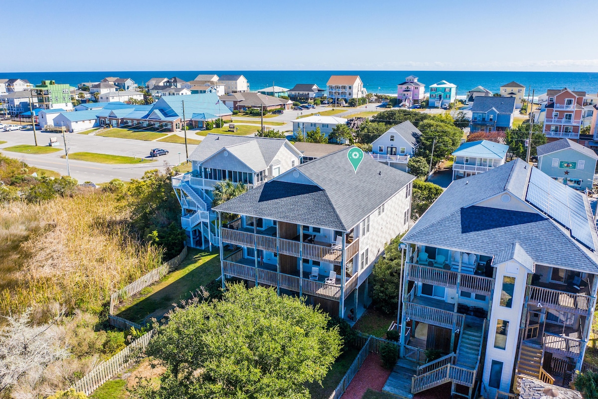 This beautiful oceanfront home is the "Island Time Escape" you’ve been looking for! Enjoy this peaceful oasis with the whole family, decorated with a mix of traditional, contemporary, and nautical furnishings. This home provides fantastic views and is loaded with amenities for your group of up to 12 people. Relax on the oceanfront decks or hit the beach if you prefer your toes in the sand. Located close to downtown Surf City and Topsail Beach, this house has it all to create lasting memories.