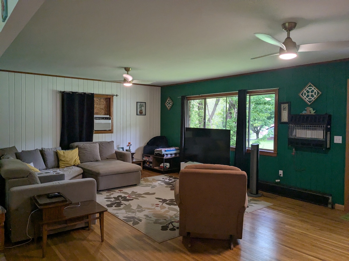 My place is good for couples, solo adventurers, business travelers, families (with kids), and furry friends (pets). I do have a 50.00 pet fee per dog up to 2 dogs only. It is located just above the entrance to the Smoke Hole Canyon with great fishing, beautiful scenery along the paved country curvy road. You can drive through the canyon and come out on Rt 28 just below the Smoke Hole caverns and gift shop. Then continue to Seneca Rocks and hike the rocks or drive to Nelson Rocks for zip lining.