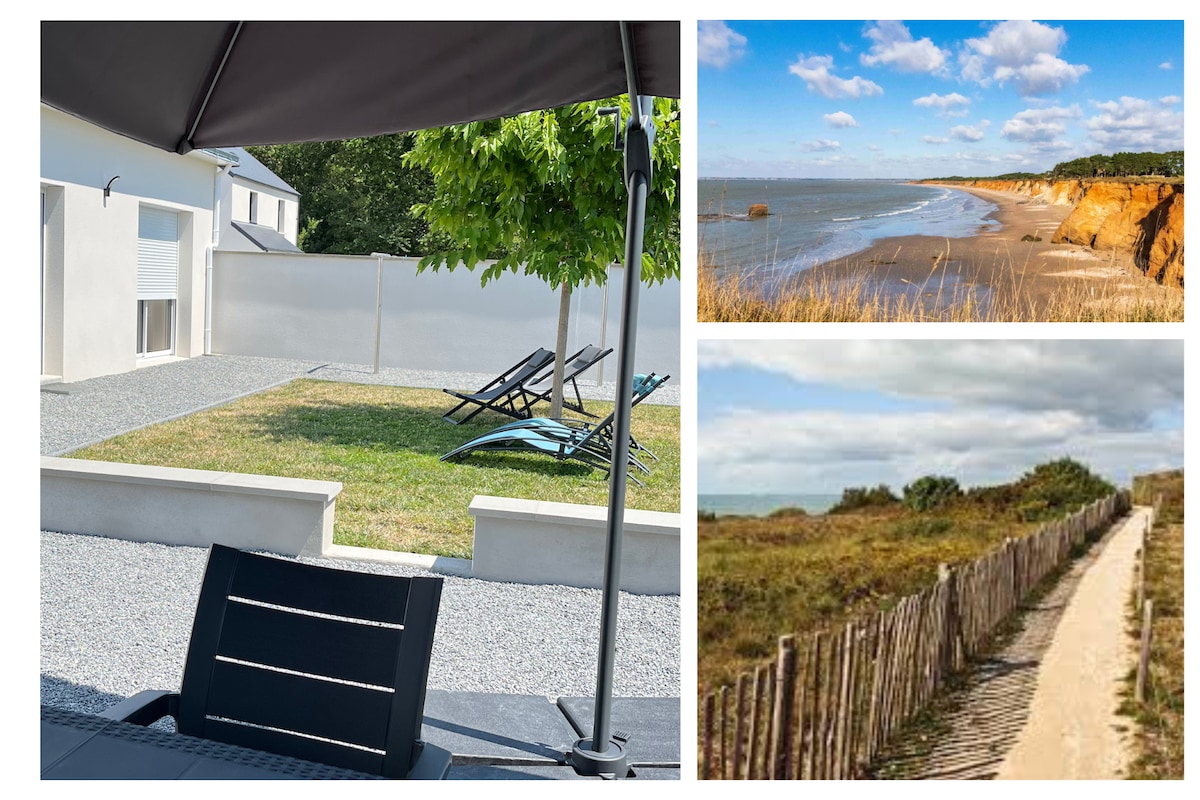 Détendez-vous dans ce lieu unique et paisible A 150 mètres des plages , cette confortable maison familiale avec sa terrasse et son jardin clos orienté plein sud vous offre l'aisance de barbecue entre amis Durant votre séjour ,vous pourrez profiter des joies de la baignade , des balades et des parties de pêche en famille. Pour vous ressourcer , le repos et la quiétude seront présents . Capacité d'accueil 4 personnes