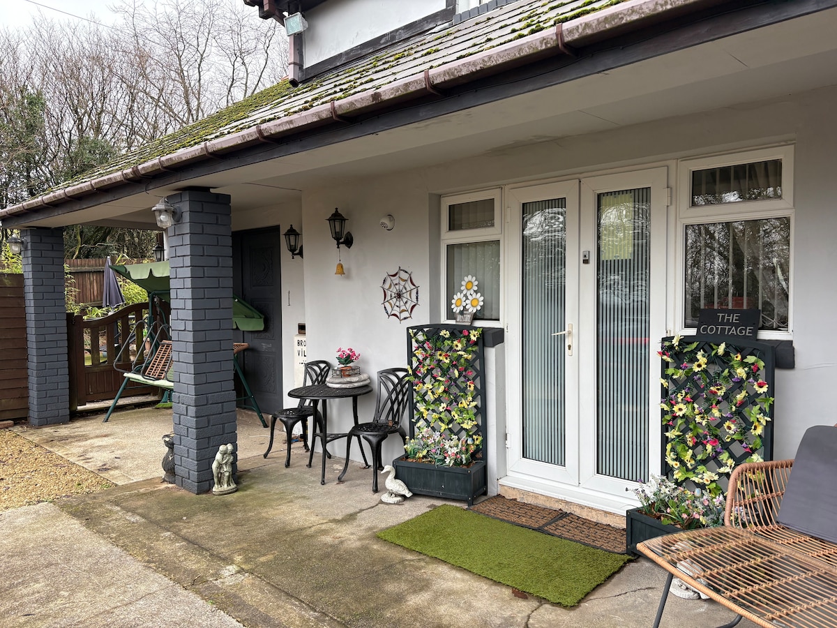 Our cottage is a lounge/Kitchen that is light & airy with French doors leading to the patio, I supply milk, Tea, coffee, sugar, cereal, cake, biscuits, We have a washing machine & Tumble dryer in the kitchen, These are NOT for use of one Night Stays, Only for guests staying 4 days or longer. Upstairs, double bedroom, TV, Hairdryer, wardrobe, hangers, bedside cabinets lamps, Iron & ironing Board. Bathroom bath & overhead shower, I supply Towels, shower gel, shampoo & conditioner & toilet rolls,