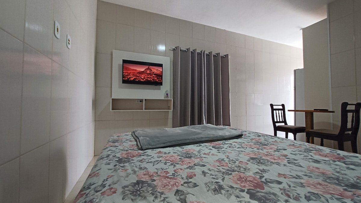 Your adventure in Penha starts here! Our modern studio is the perfect base to explore the area. Just 50m from the beautiful Fortaleza Beach and 1km from Beto Carrero World. The highlight is the Hot Wheels-themed room a unique experience for speed fans! The unit includes a queen bed, double sofa bed, air conditioning, and a full kitchen. On the rooftop, the pool offers stunning views for relaxing moments. Book now and enjoy unforgettable days!