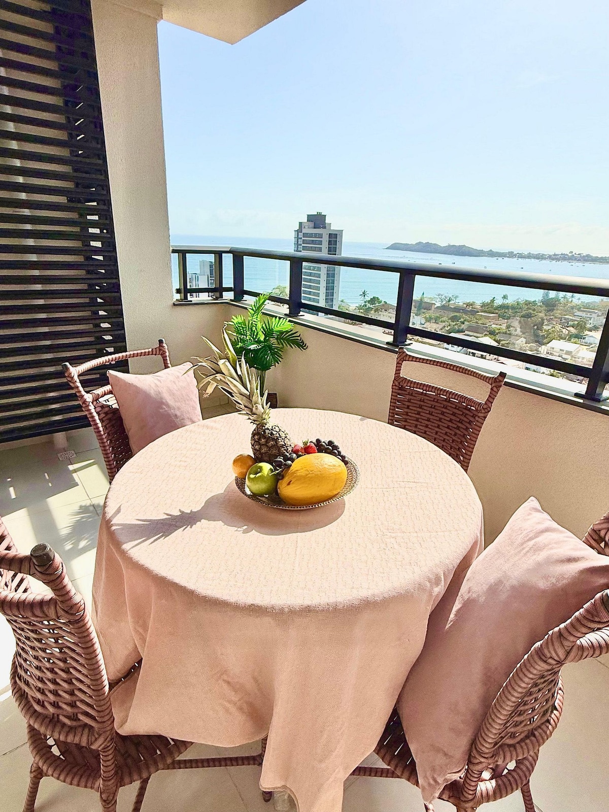 Apartamento a 25 metros da praia de Penha e com vista pro mar e próximo a padaria, bares, restaurantes sendo que está localizado a aproximadamente 500 metros do Parque Beto Carrero World. O apartamento tem 92 metros quadrados, sendo 2 suítes, 1 lavabo, sala( wi-fi, Tv e Netflix) cozinha integrada, lavanderia, sacada com churrasqueira e uma mesa para churrasco. O apartamento possui 2 vagas de garagem e está todo mobiliado inclusive com roupas de cama, mesa e banho.