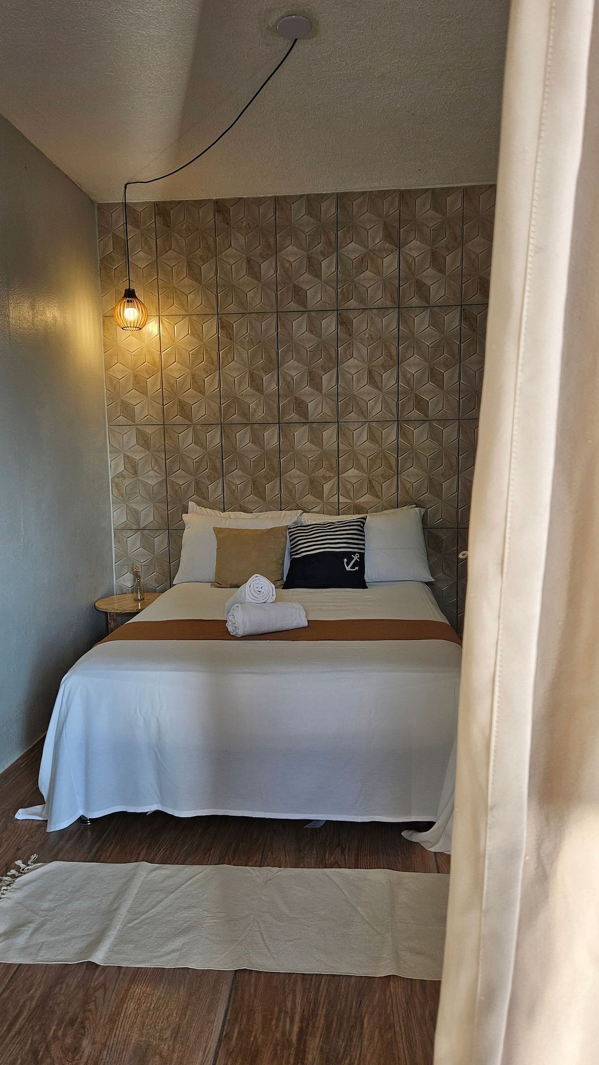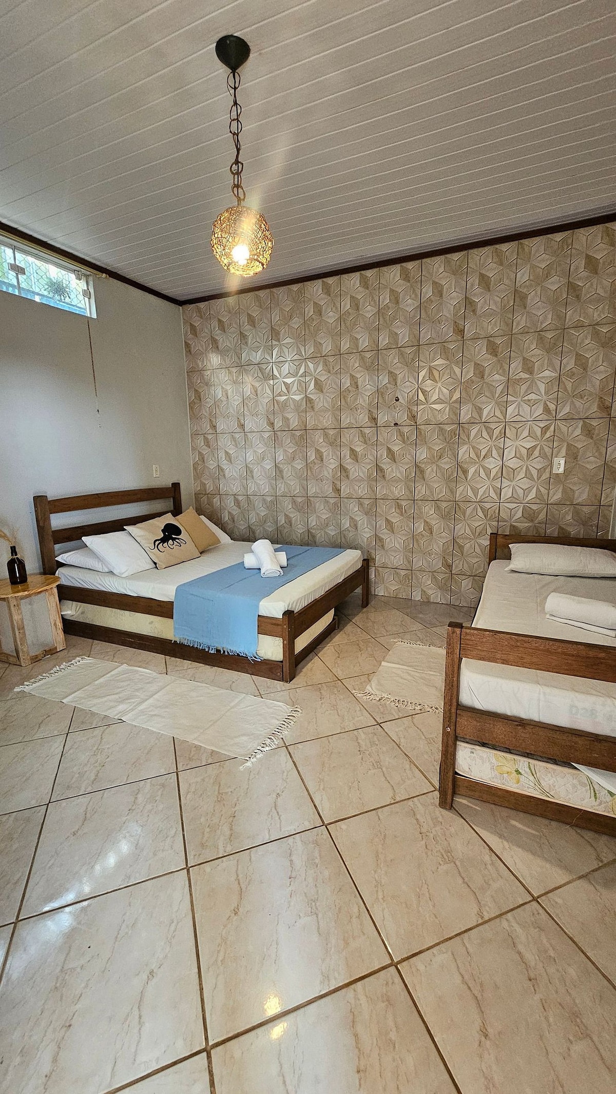 O quarto possui uma cama de casal, é aconchegante e confortável, com ar condicionado. A casa conta com ambientes compartilhados com outros hóspedes e o proprietário, sendo cozinha, banheiro e área de lazer com piscina. Possuímos pets na casa, todos fruto de resgate. São 5 cachorros e um gato, todos dóceis e acostumados com os hóspedes. A casa fica aprox a 180m da praia, no centro de Piçarras. Nas proximidades há farmácia, mercado, restaurantes e panificadora.