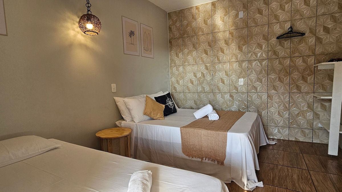 Seu quarto conta com ar condicionado, Smart TV, frigobar e um banheiro. Ofertamos ainda roupa de cama e toalhas para uso no quarto.