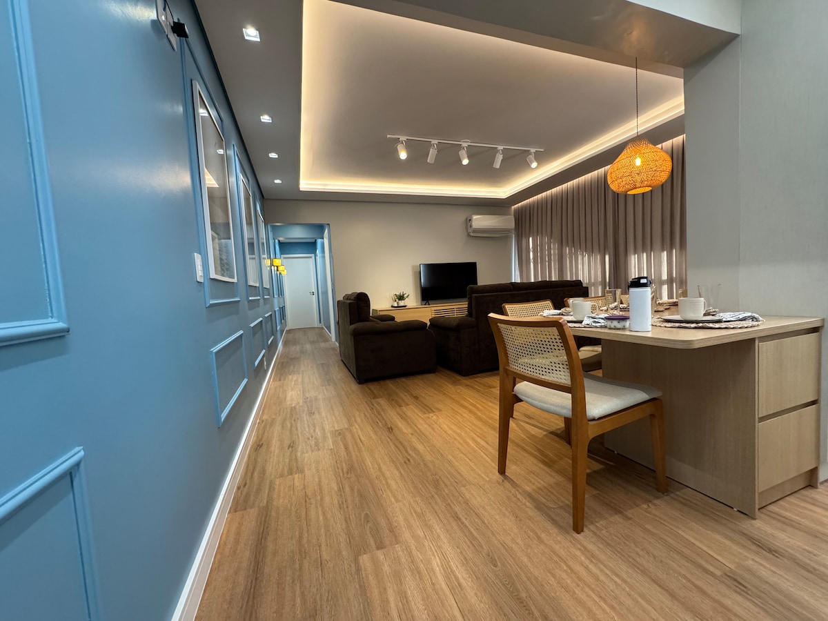 Apartamento no centro, ideal para 8 hóspedes. São 4 quartos (1 suíte), todos climatizados e com Blackout. Desfrute de Wi-Fi e 3 SmartTVs (sala com FireTV Streaming). Cozinha completa, copa e sacada com churrasqueira e Reiki. Fornecemos 8 toalhas de banho. Estacionamento: 1 vaga, veículos adicionais na via, em frente ao Condomínio. Não fornecemos máquinas de lavar/secar. Tudo perto: Praias (1,5 Km) e serviços (Bancos, Restaurante, Padaria) a 300m. Balneário Camboriú (30 min) e Aeroporto (25 min).